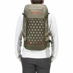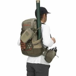 The Simms Flyweight Backpack is a fishing backpack for daytrips with you, your fishing rod and additional essentials. Inside the main compartment it’s all about organization so you can locate everything from lunch to flybox as well as hang a hydration reservoir in the sleeve. Externally, the pack can slip a rod holder into the pocket and secure it, carry a water bottle directly on the hipbelt and attach flyboxes to the harness system. Stuff a rain jacket behind the harness and grab it when the weather changes unexpectedly. Carry everything hands free to that special spot of yours on the river.